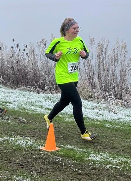 Lucy started running in her final year of university after long days in the library. After joining Striders in 2022 she quickly became a member of the cross country team, lured in by the offers of hot chocolate and cake at the finish line. For her, cross country is the highlight of the Striders running calendar, however cold/wet/icy it is!